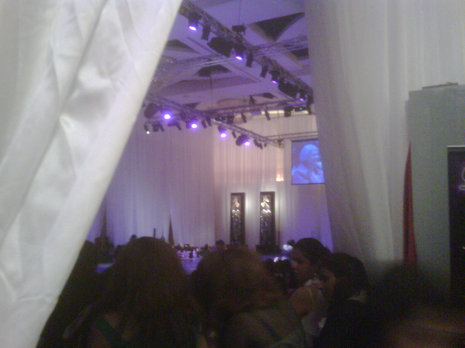 There was two banquet halls, one for the bazaar and other for the fashion show. Saudi designers were competing for the title of Fashion Designer of the year, first time ever! There was a white runway and beautiful dim lighting all around the hall. An anticipating female crowd filled the room with perfumes and excited chatter. Maids dressed in old fashioned arabic clothing went around offering the guests arabic coffee, chocolates and dates.The ceiling was adorned with huge crystal chandeliers. An all female camera crew was ready to capture the event on film. There was lots of stunning ladies in attendance, I felt under dressed in my long flowery dresss. Everyone seemed to have had their hair done at a salon and donned Oscar Gala-worthy dresses and evening makeup.